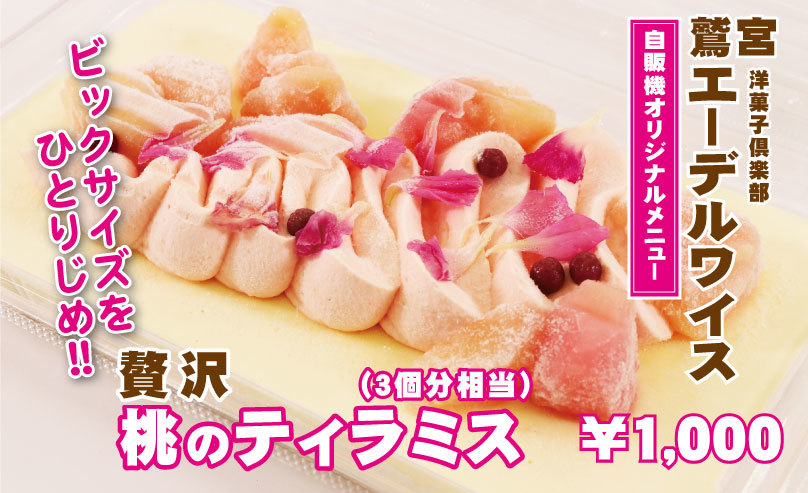 | 原材料名 | 桃 【クリーム】乳、砂糖、卵 【スポンジ】卵、砂糖、小麦粉。B.P |
