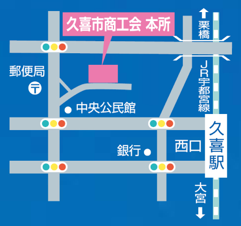 | 久喜市商工会本所 | 〒346-0003 埼玉県久喜市久喜中央4-7-20 TEL 0480-21-1154 / FAX 0480-21-2337 E-mail info@kuki-sci.or.jp |