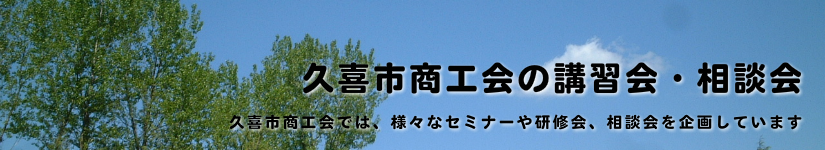 ■久喜市商工会 セミナー・講習会予定表 こちらからPDFでご覧いただけます。 ■会員ホームページ作成及びネットワークに関する相談会 ホームページを開設したい方、活用法を知りたい方、その他パソコンの接続など、 (相談場所は貴事業所へお伺いするか、本会で相談致します。) 相談会のご案内と申込書はこちらから