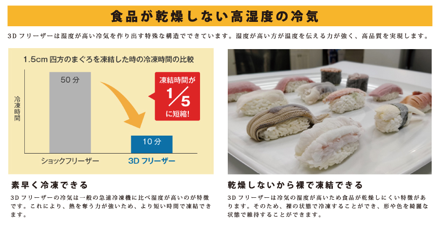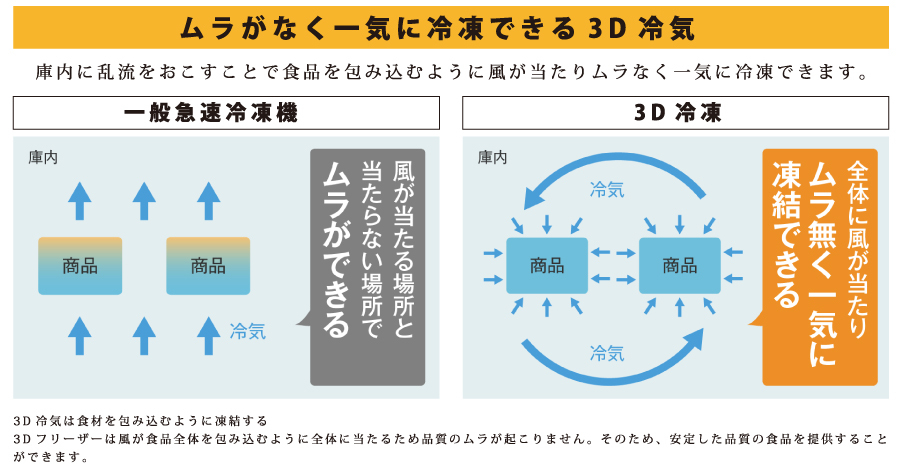 久喜市商工会では、会員の皆様の販路を拡大させるべく、ムラがなく乾燥させずに一気に冷凍できる3D急速冷凍装置を導入いたします。(稼働開始:令和3年10月中旬ごろ予定)