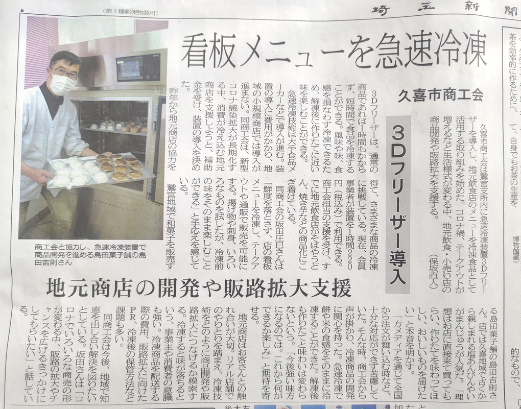 (2022.01.15)急速冷凍庫活用が埼玉新聞に掲載されました