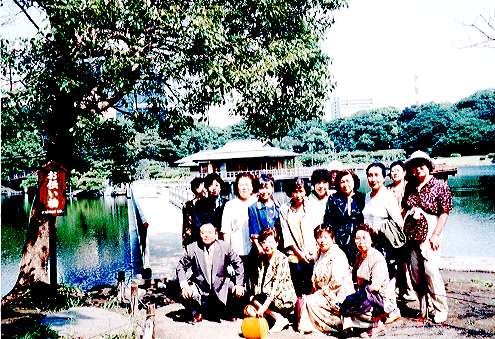 | ▲浜離宮で散策を楽しんだ商工会女性部一行。前列左は千葉商工会長。 |