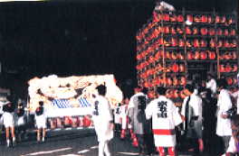 | 今回は、9月8日に秋田県で開催された『2001おなごりフェスティバルin能代』に、久喜の堤燈山車から唯一参加した『本壱祭典保存会』の橋本武男さんと小森哲夫さんに、代表してお話を伺いました。 この『おなごりフェス』には、地元や近隣だけでなく、遠隔地から参加のある事が特徴です。人口5万5千人の能代市が、23万5千人(今年)にふくれあがる巨大イベントに成長、今年は、12の出し物が登場しました。近くは、浅草カーニバルからサンバが例年参加しています。この祭りの中でも高さと動きが圧巻の我が堤燈山車の迫力あるデモンストレーションに、ひときわ大きな歓声があがりました。 本壱祭典保存会の方々は、約20年前"日本の祭り”に参加した後、地元以外のイベントに参加して、1人でも多くの観光客を招致したいと考えていました。数年前から『おなごりフェス』に注目していたところ、降って湧いた様に能代市からラブコールがあり、機運が一致した事から、今回の参加が実現しました。 この『おなごりフェス』に参加して、この祭りのエネルギーと魅力について考える機会に恵まれた結果、@観客が見物しやすい形での開催A祭り主体の能代活性化協議会メンバーがほぼJCメンバーB音・光・踊り等様々な祭りが結集C祭りの集客力から資金集めが容易等の点が分りました。久喜市の堤燈祭りにも今後、活かす点があると、熱をこめて語ってくださいました。 この祭りに参加し、堤燈祭りについて質問責めにあい、対外的なPRパンフレットの必要性を感じたそうです。また、久喜出身の方が30年ぶりに堤燈山車を見たと感激していたのが印象に残った、との事でした。 (林 明委員) |