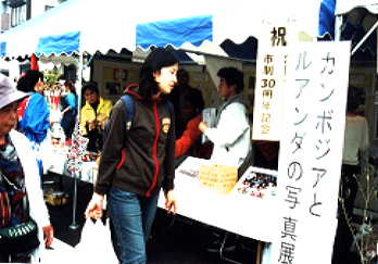 | ▲商工会国際交流委員会の『カンボジアとルアンダの写真展』と民芸品販売 |
