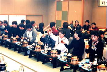 | ▲おいしい昼食をいただき親しい同僚と乾杯 |