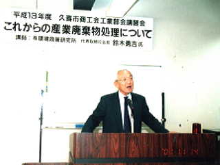 | 工業部会の講習会が、11月14日(水)、『これからの産業廃棄物処理について』をテーマに開催されました。 講師の鈴木勇吉氏は、大蔵省理財局入省を経て、(社)全国産業廃棄物連合会・(社)日本産業廃棄物処理振興センター・(財)産業廃棄物処理振興財団・廃棄物学会・埼玉県環境アドバイザー等を歴任、現在は滑ツ境政策研修所代表取締役会長をつとめる産廃に関するエキスパートともいえる道を歩んで来られた方です。 日本の産廃が表面化したのは、高度経済成長を遂げた1960年代、大気汚染や水質汚濁から、公害対策基本法が施行され、その後、手直しや新たな項目が付け加えられ、現在の産廃処理法や資源有効利用促進法(リサイクル法)家電リサイクル法に至る形になったとの事でした。 特に、昨年の6月に改正となった『排出事業者との処理業者の責任』が、これまでと違う点を分かりやすく説く等、参加者が思わず身を乗り出す実用的で重要な内容でした。 また、立場を変えて消費者の視点として、ドイツの消費者が家電品等を選ぶ際、参考にするのは各メーカーの社会貢献度や企業努力と聞き、おおいに考えさせられました。地球環境を守る為に、我々消費者がグローバルな視点で品物選びをする事により、企業に評価を下すのが最善なのではないか、一消費者として警鐘を鳴らされた思いがしました。 |
