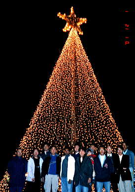 ▲点灯したイルミネーションツリーの前で(商工会青年部の方々)
