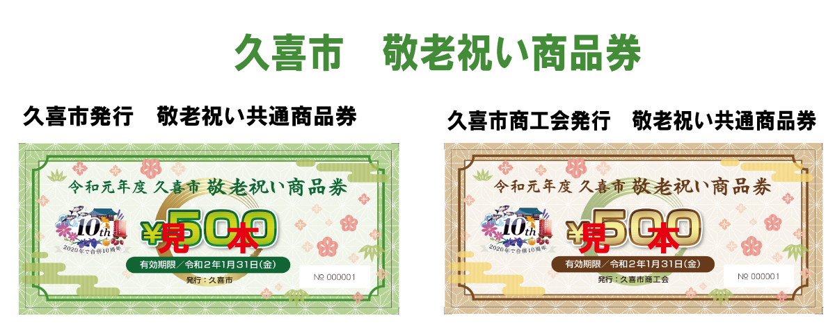 『久喜市商工会 共通商品券』と『久喜市 敬老祝い商品券』は
