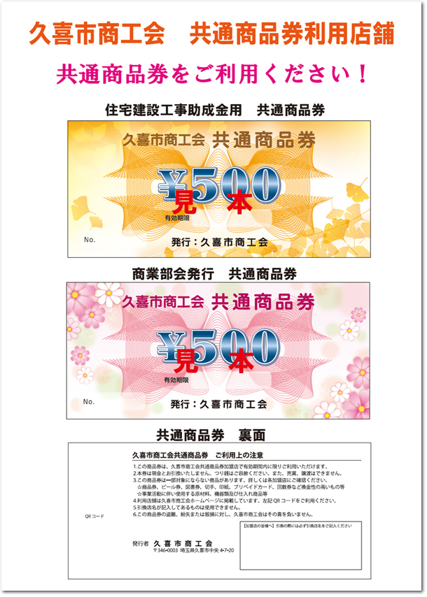 久喜市商工会会員であり、久喜市内に店舗のある事業者