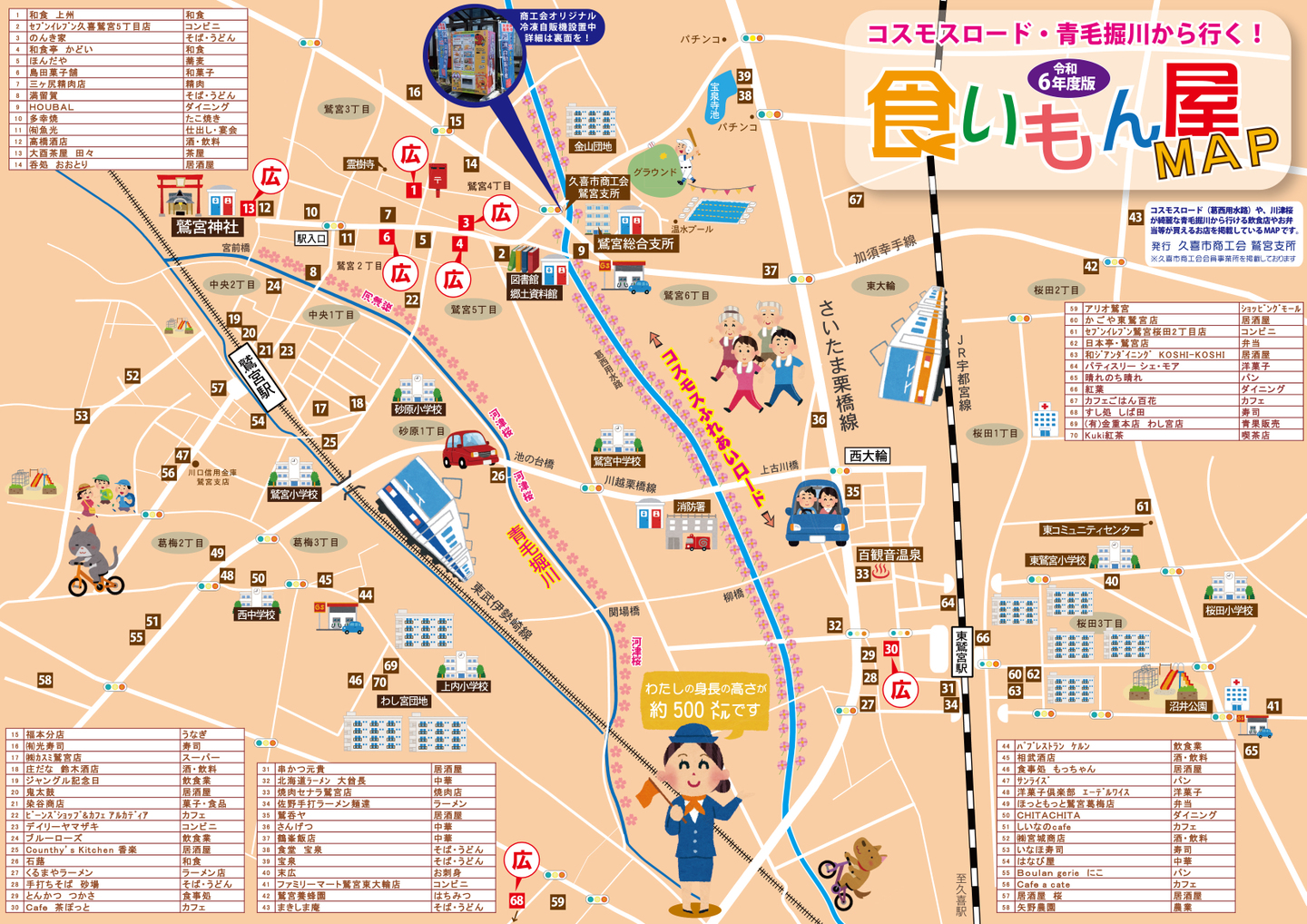 食いもん屋マップ(鷲宮地区 コスモスロード・青毛堀川周辺飲食店マップ)