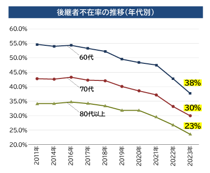 (出所)「2023年度版中小企業白書」、帝国データバンク「全国企業『後継者不在率』動向調査」(2023年)を基に作成。