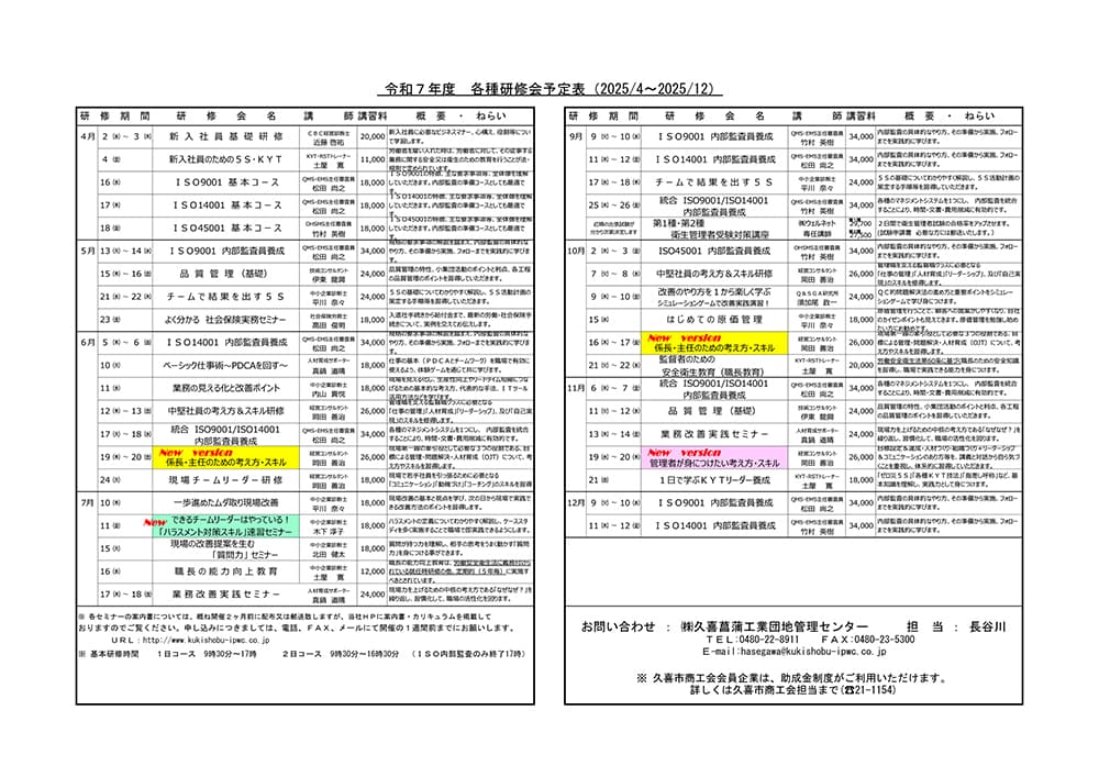 会員企業の資質向上を目的として、㈱久喜菖蒲工業団地センターで開催する各種研修会への参加について費用の一部を助成。令和7年4月から令和7年12月の期間において各講座受講の際は助成制度をご活用ください。
