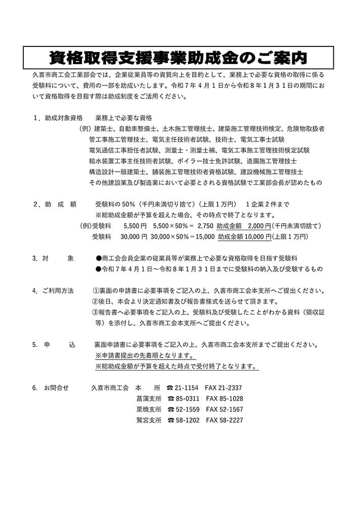 3.対象 ●商工会会員企業の従業員等が業務上で必要な資格取得を目指す受験料