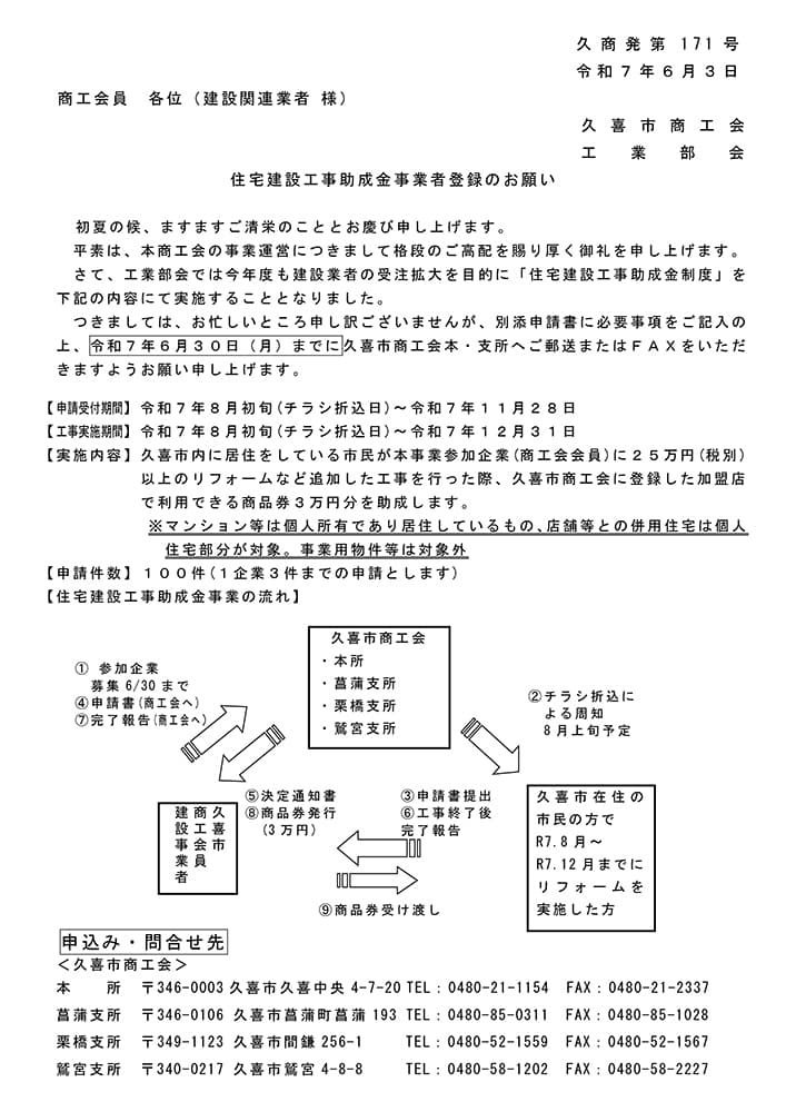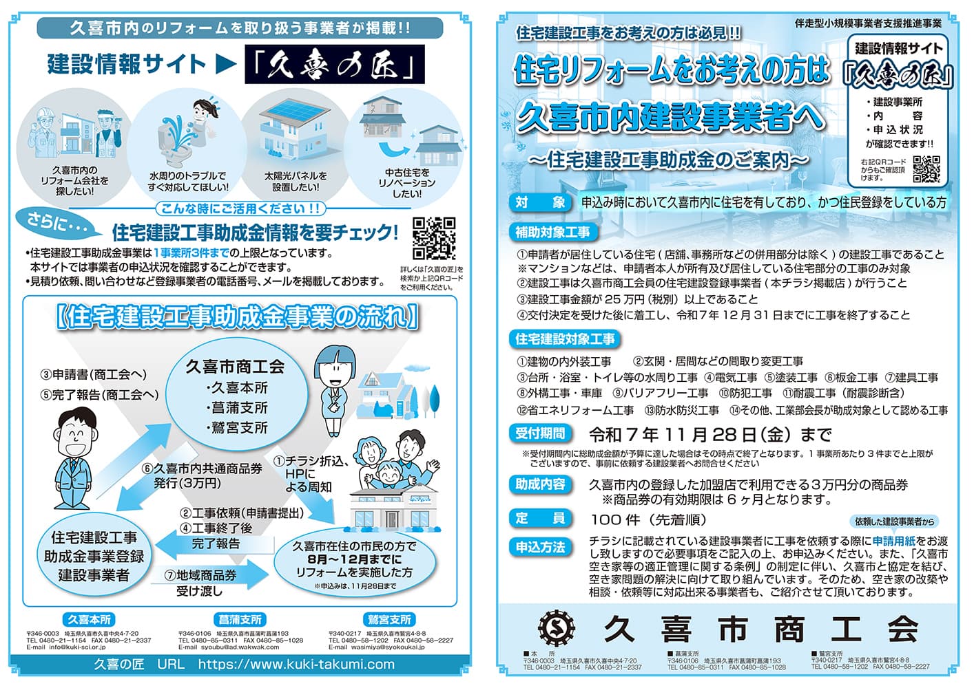 以上のリフォームなど追加した工事を行った際、久喜市商工会に登録した加盟店