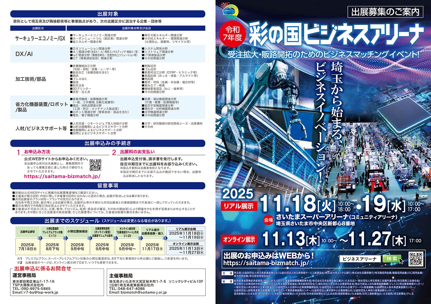 ※彩の国ビジネスアリーナの出展は他助成事業がない場合対象