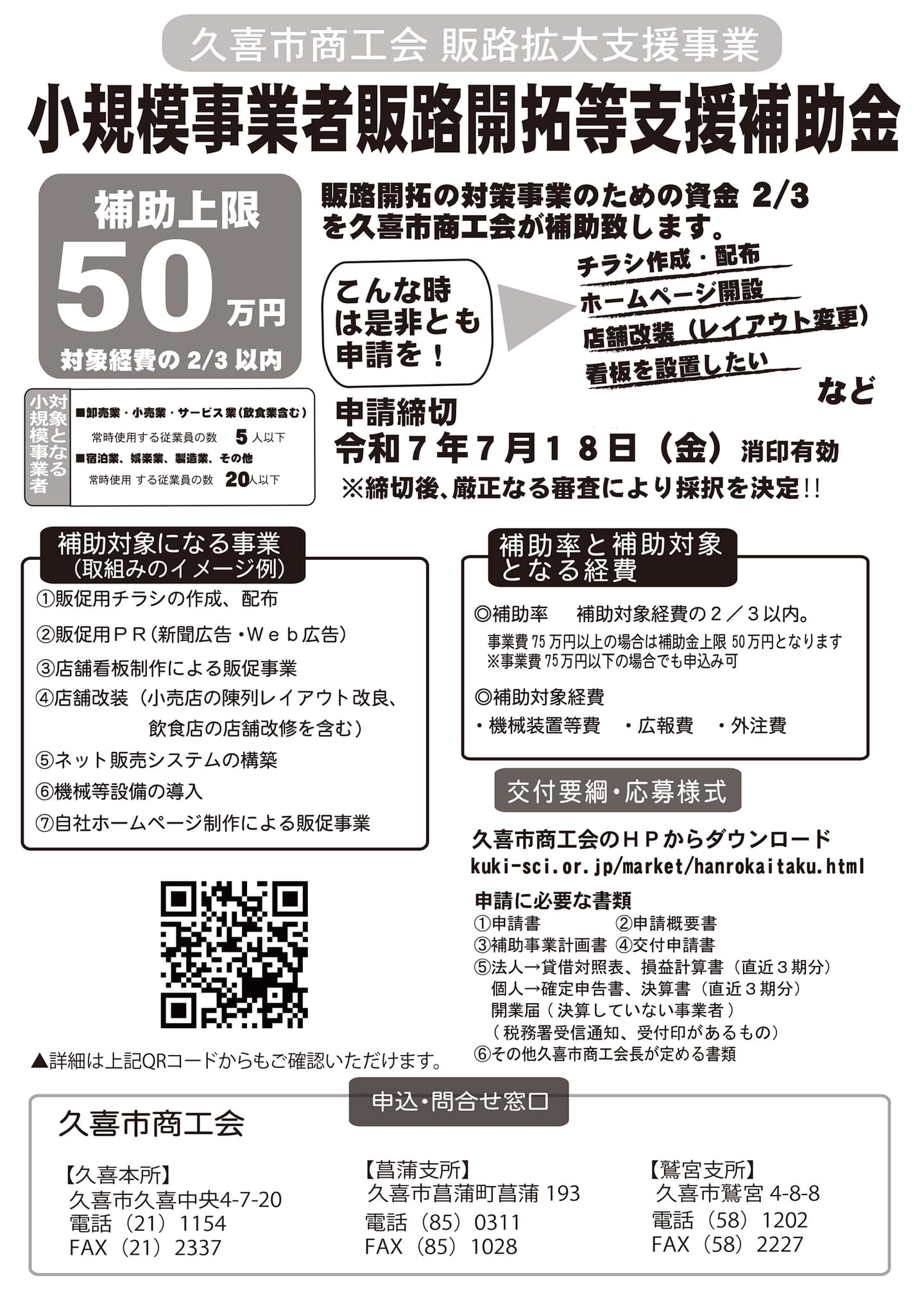 上記申請書類に必要事項をご記入の上、久喜市商工会本・支所まで申請ください。