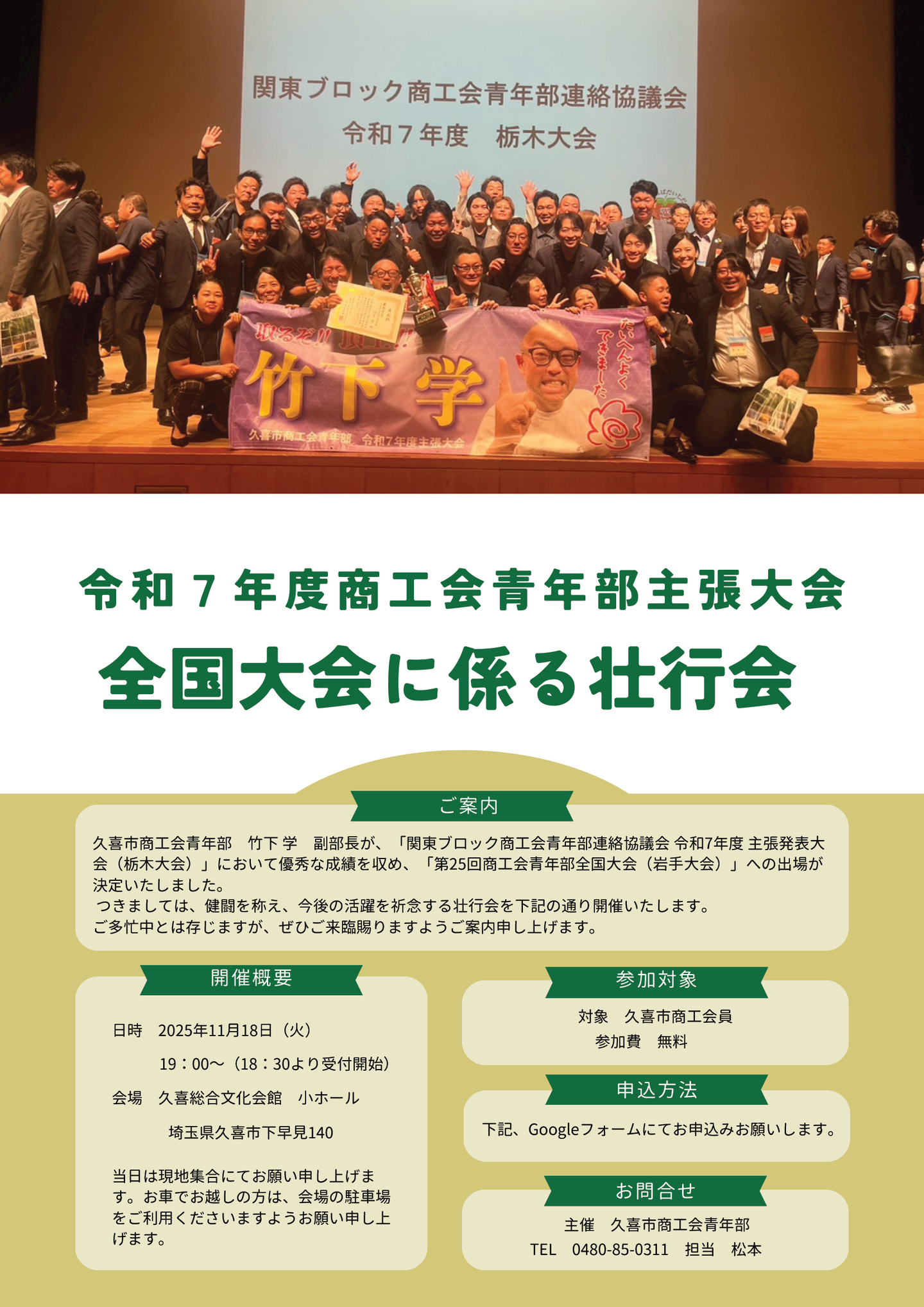 青年部の主張大会全国大会(岩手大会)に向けた壮行会について