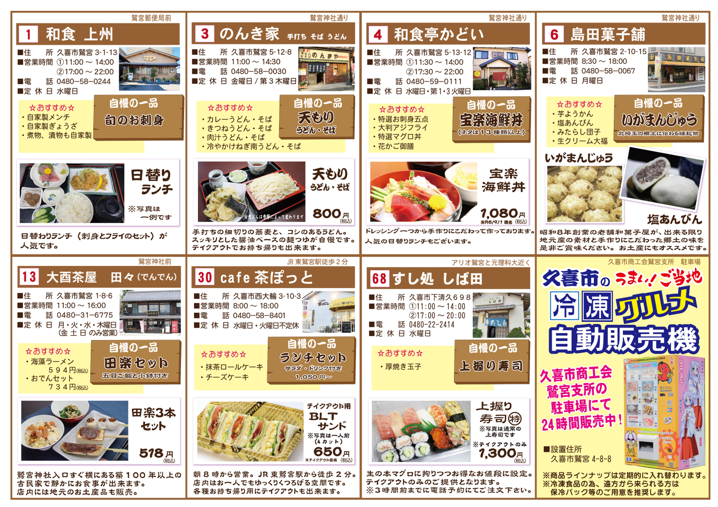 久喜市商工会商業部会では、市内外から訪れます観光客向けの周辺飲食店紹介マップ『食いもん屋マップ』を作成・配布しております。