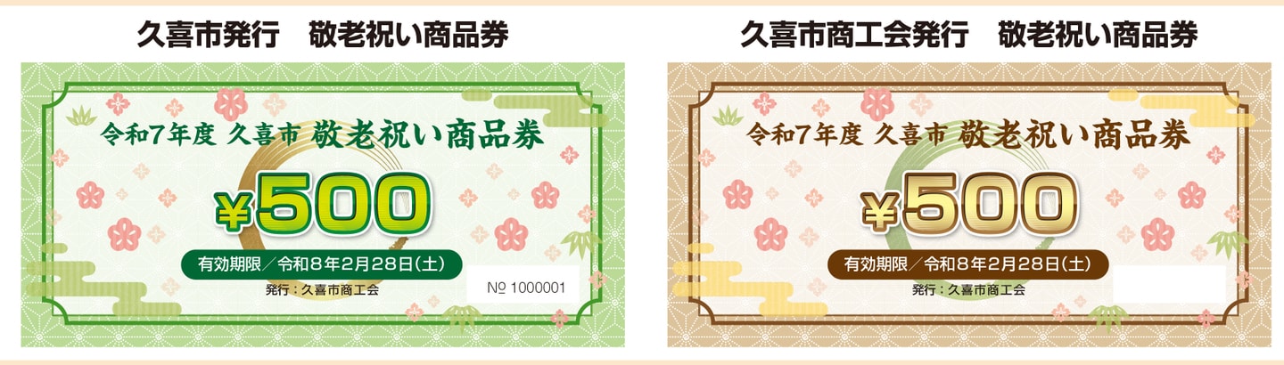 『久喜市商工会 共通商品券』と『久喜市 敬老祝い商品券』は同じ加盟店でご利用いただけます。