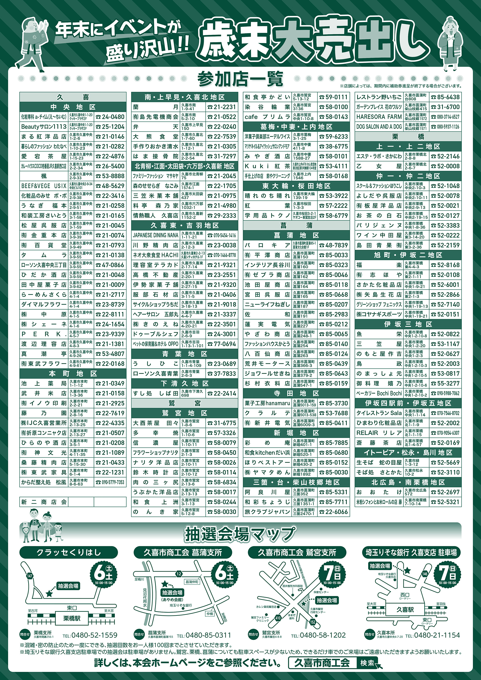 久喜市商工会商業部会では、年末に商業部会事業として、市内各地区で「歳末大売出しセール」を開催いたします。