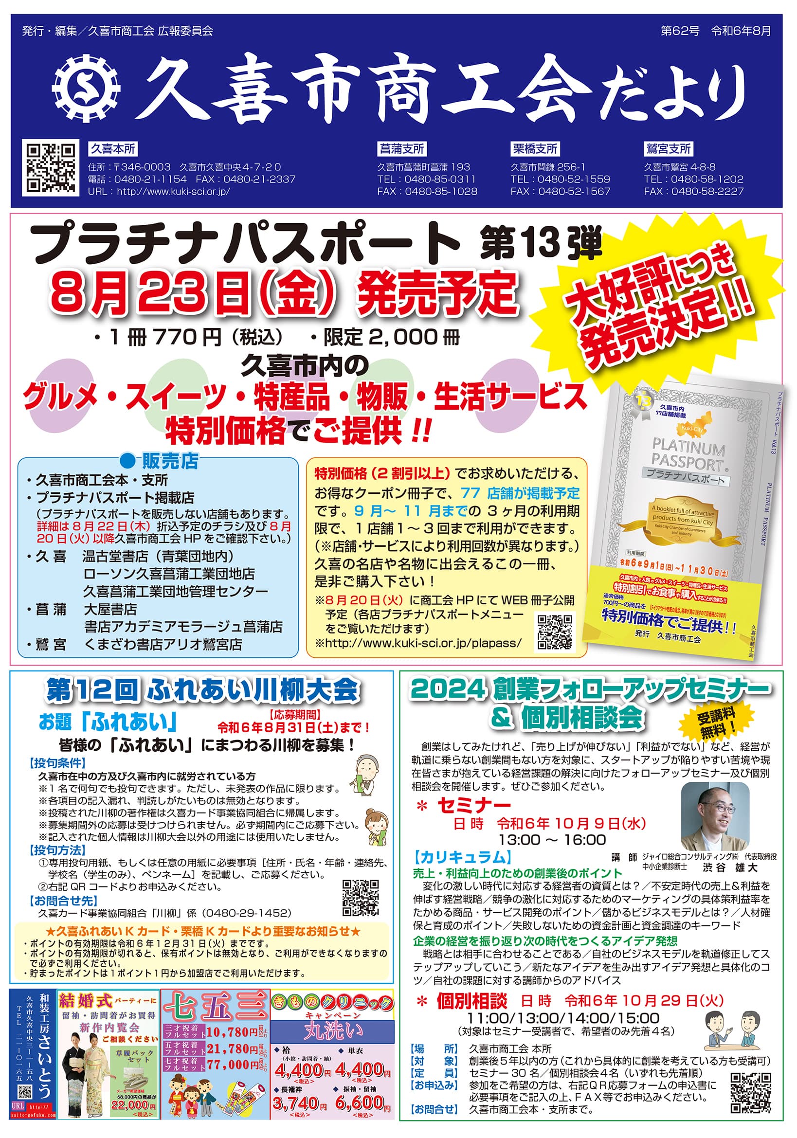 久喜市商工会が発行した広報誌のバックナンバーを閲覧できます。 久喜市商工会が発行した広報誌のバックナンバーを閲覧できます。 第68号 第67号 第66号 第65号 第64号 第63号 第62号 第61号