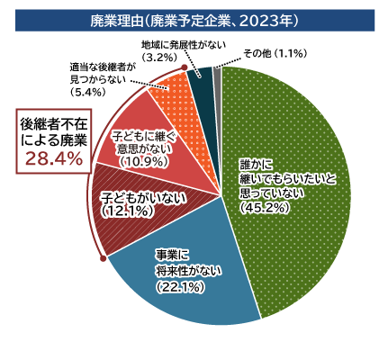 (出所)「2023年度版中小企業白書」、帝国データバンク「全国企業『後継者不在率』動向調査」(2023年)を基に作成。