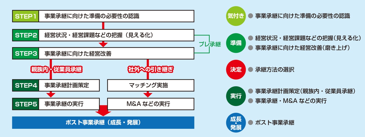 会社の大きな転機となる事業承継は、早めの準備、計画的な取組が肝要です。