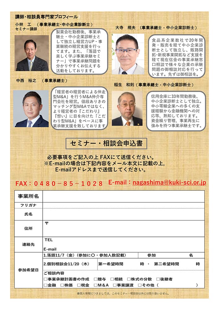 会社経営発展のための「落語事業承継セミナー」&「事業承継個別相談会」