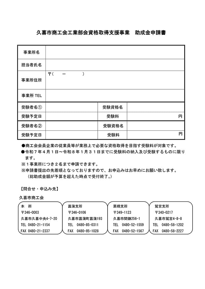 3.対象 ●商工会会員企業の従業員等が業務上で必要な資格取得を目指す受験料