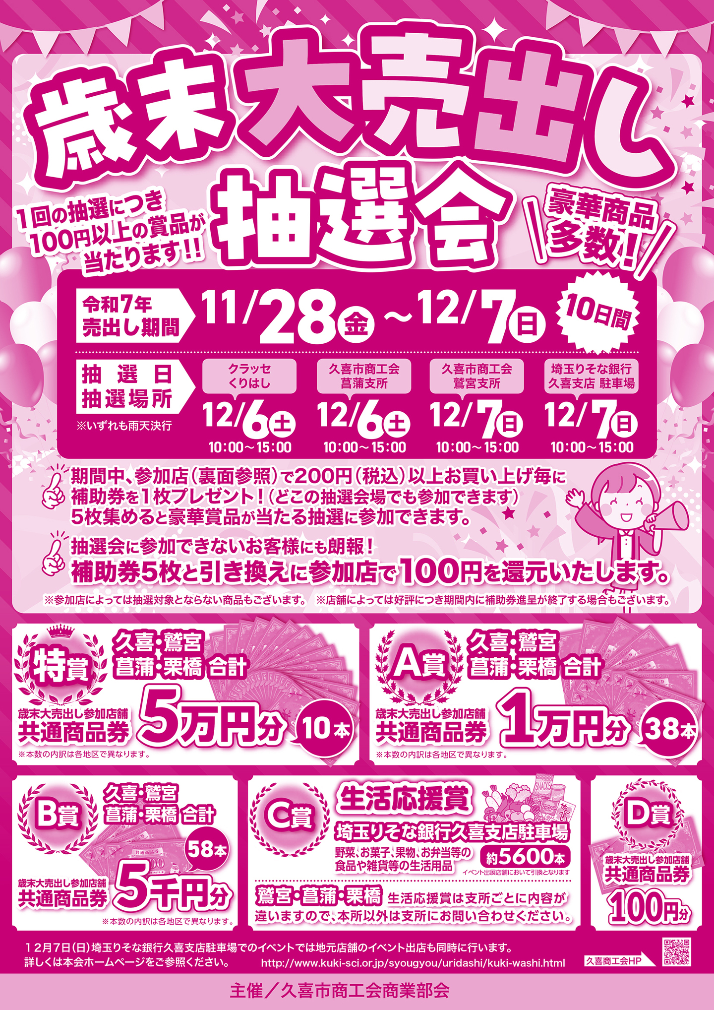 久喜市商工会商業部会では、年末に商業部会事業として、市内各地区で「歳末大売出しセール」を開催いたします。